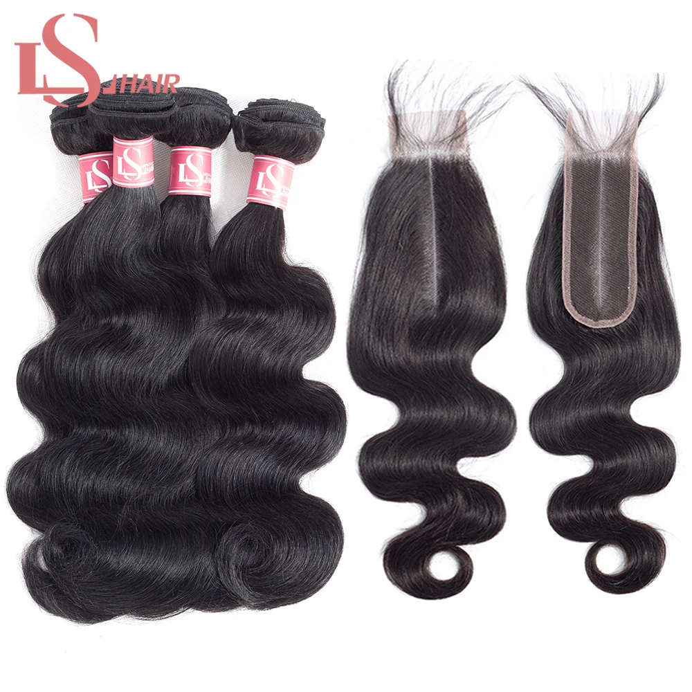 Ls Rambut Tubuh Gelombang 4 Bundel Dengan Tengah Perpisahan Penutupan 2 6 Kim K Style Brasil Remy Rambut Manusia Menenun Hitam Bundel Aliexpress